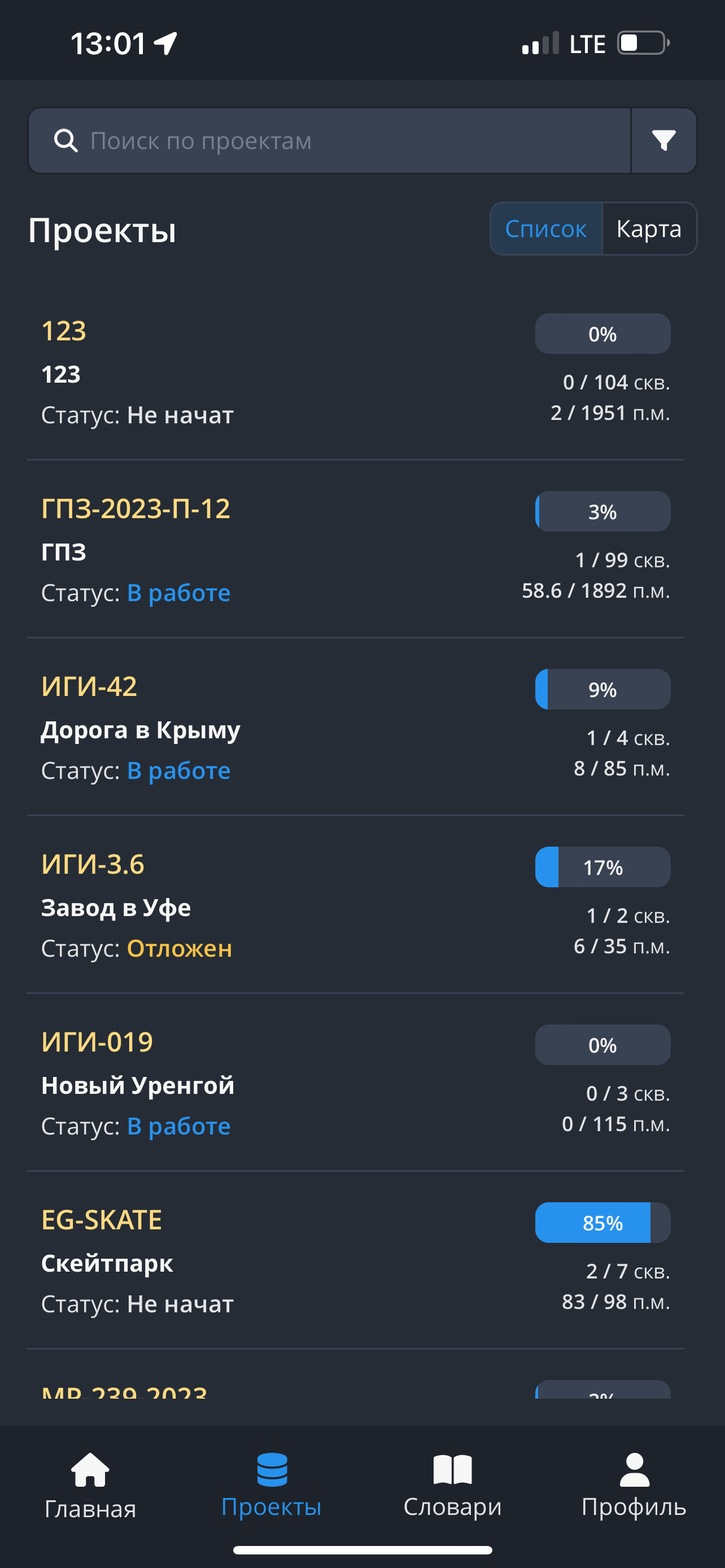 - Откройте в приложении модуль "Проекты". Выберите интересующий вас проект, нажмите на него.
