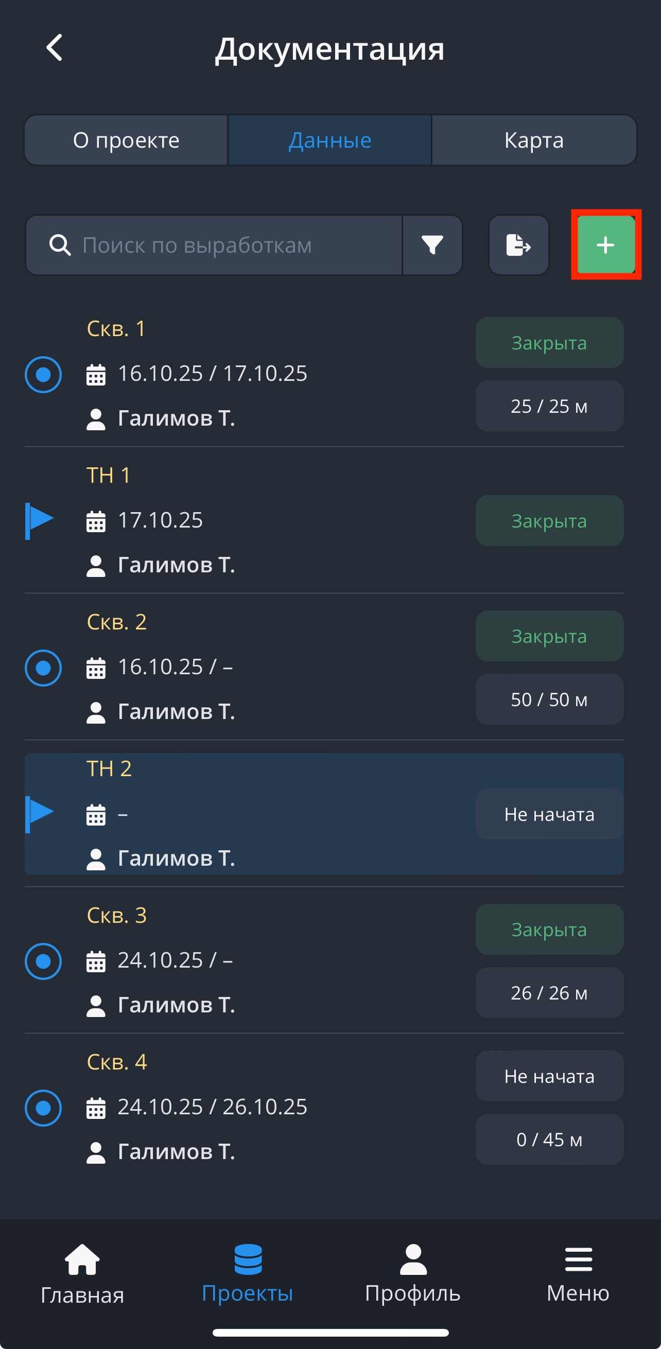 - Перейдите в проект, откройте вкладку «Данные». Нажмите на кнопку «+».