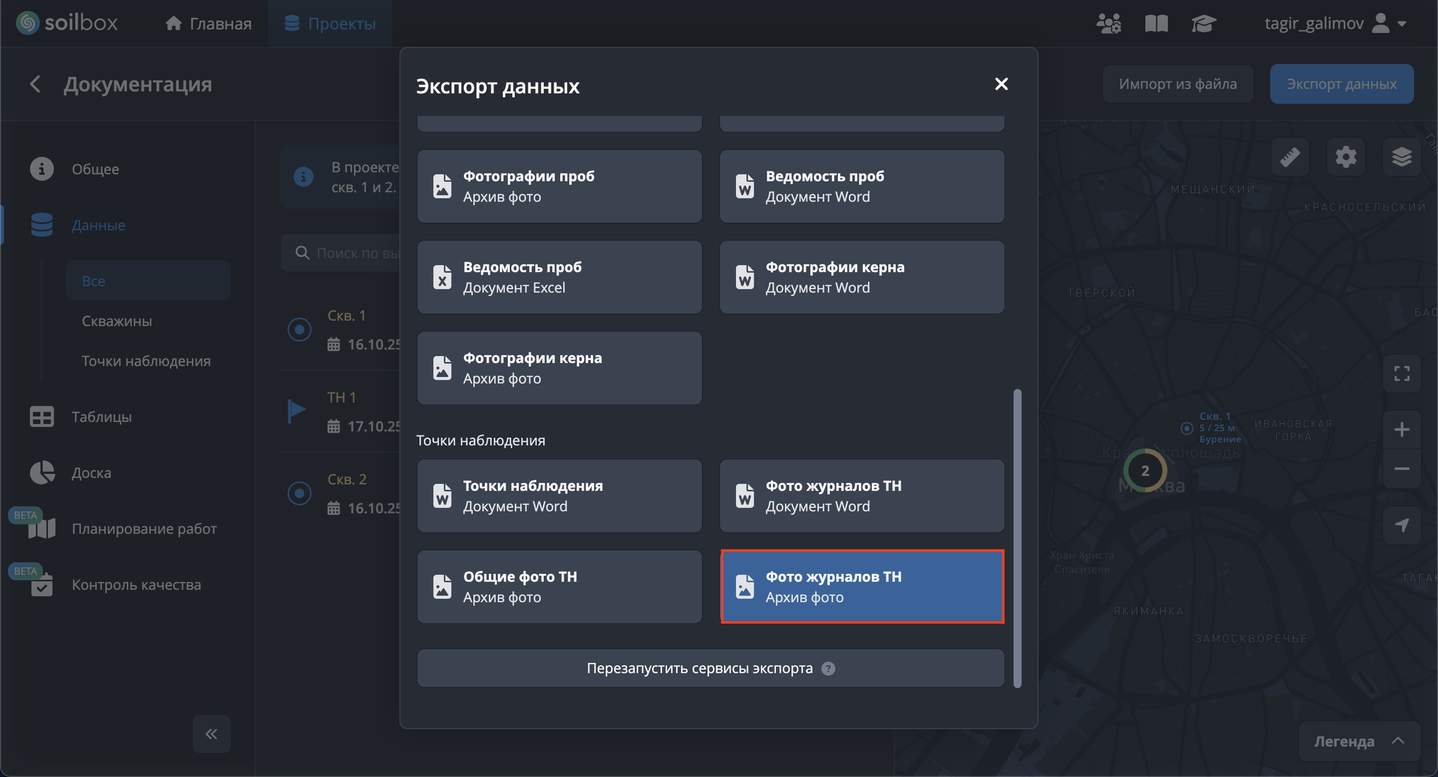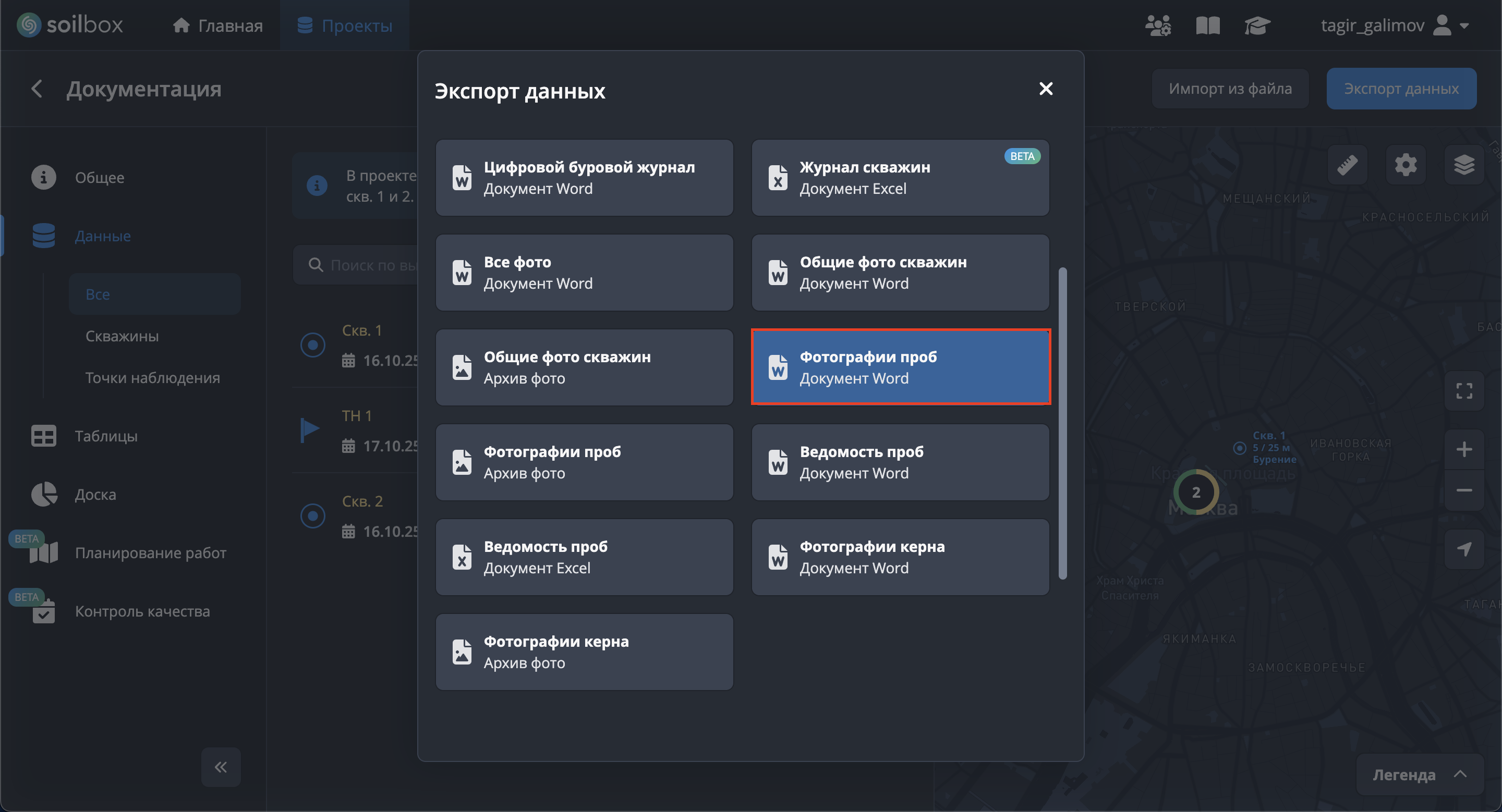 Экспорт фото проб невозможен без выбора скважин.