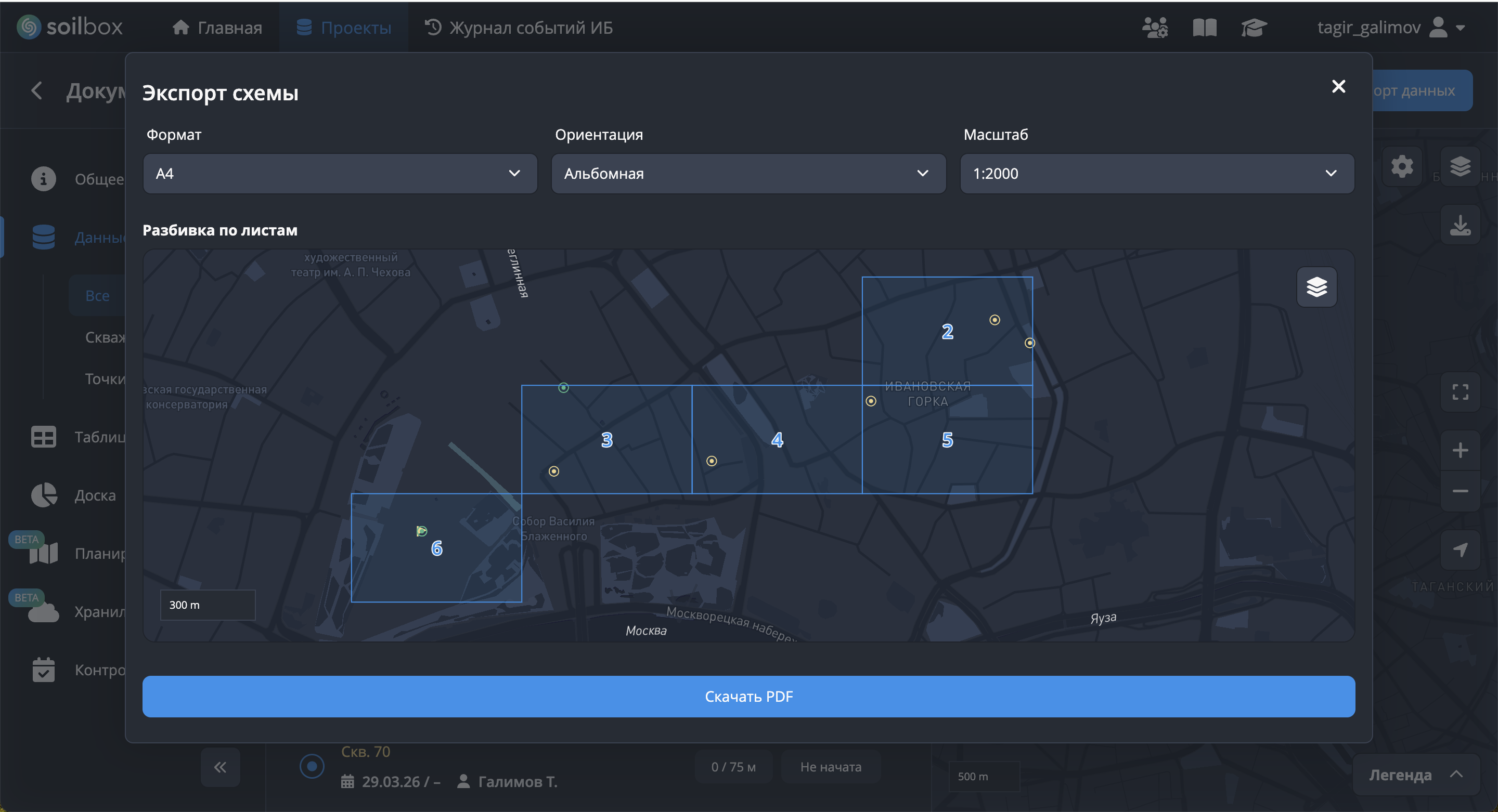 На карте доступен инструмент быстрого экспорта схемы расположения скважин и точек наблюдения в PDF.