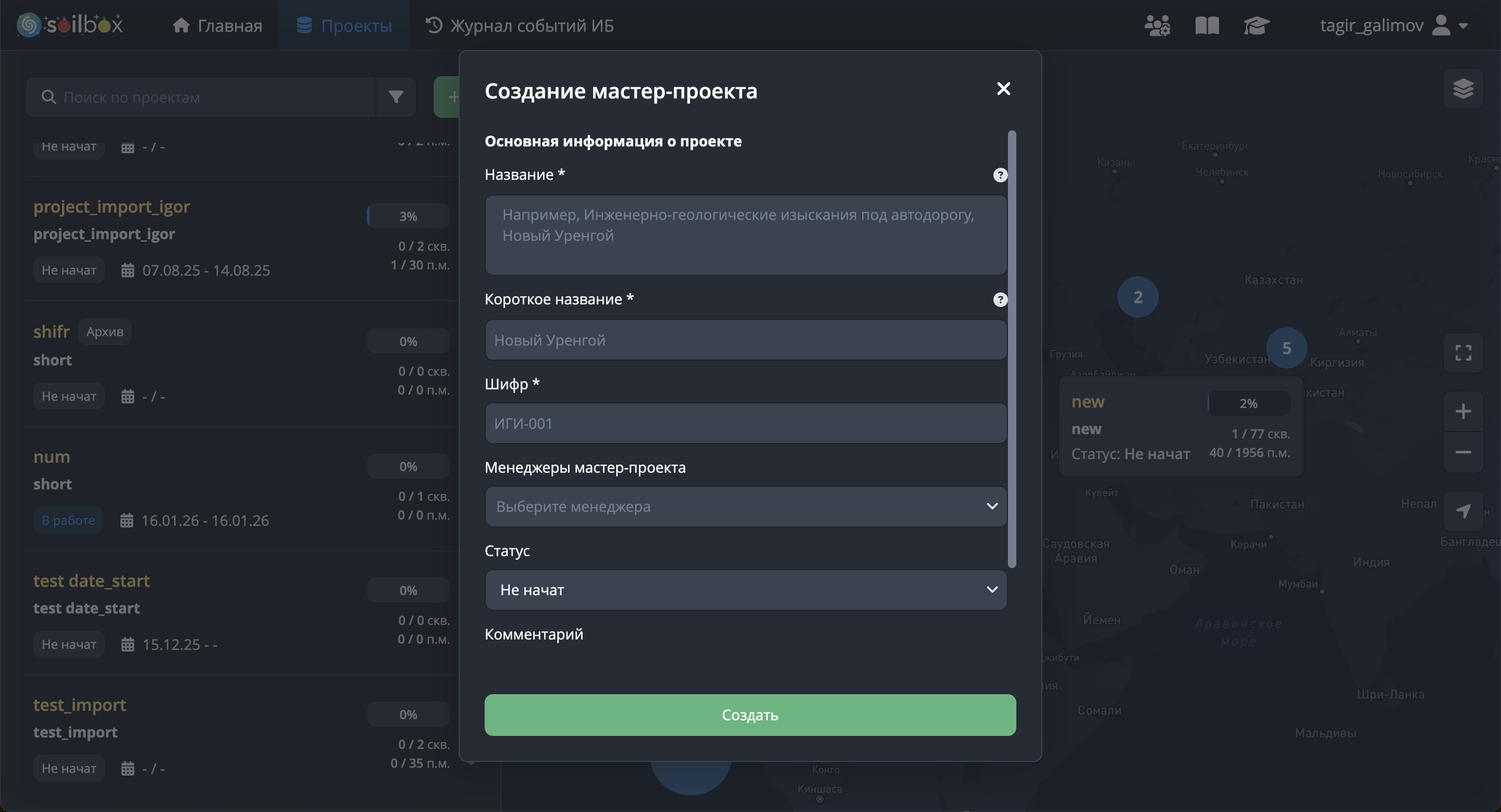- В мастер-проекте нельзя создавать или импортировать новые сущности (скважины, установки, лабораторные данные и т.д.). Он предназначен для просмотра и аналитики.