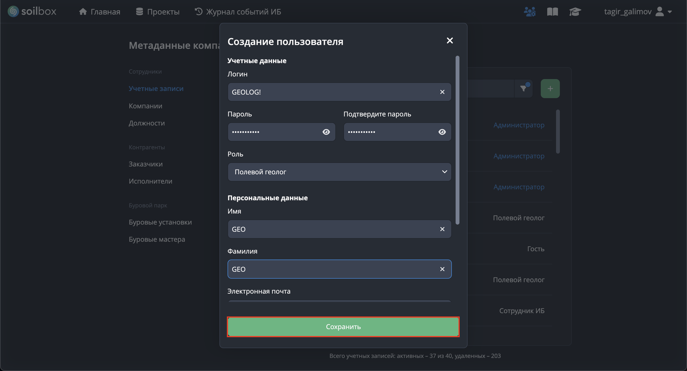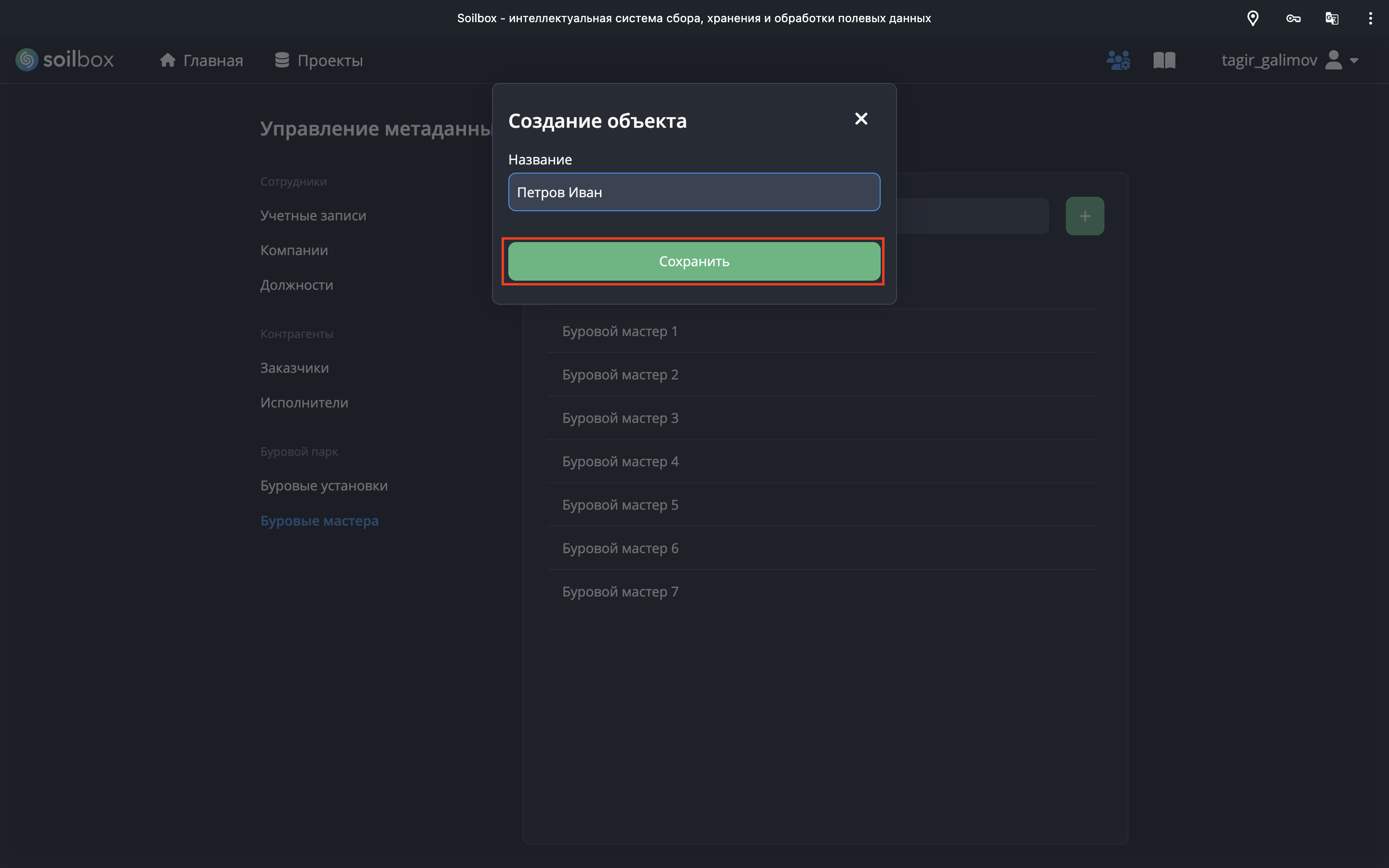 - Указываем ФИО бурового мастера и нажимаем на кнопку "Сохранить".